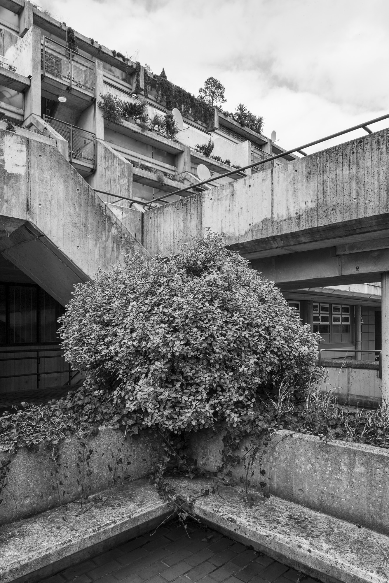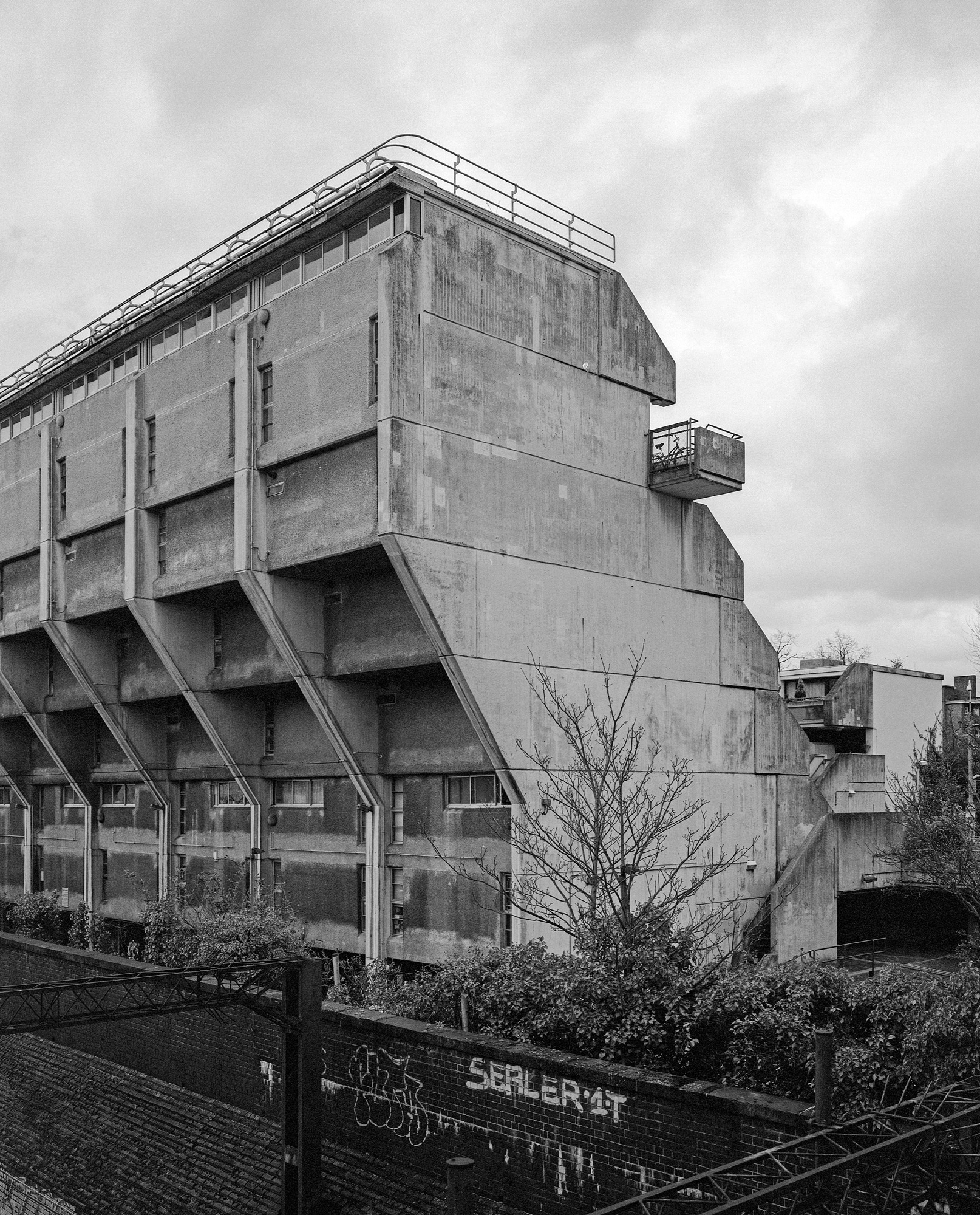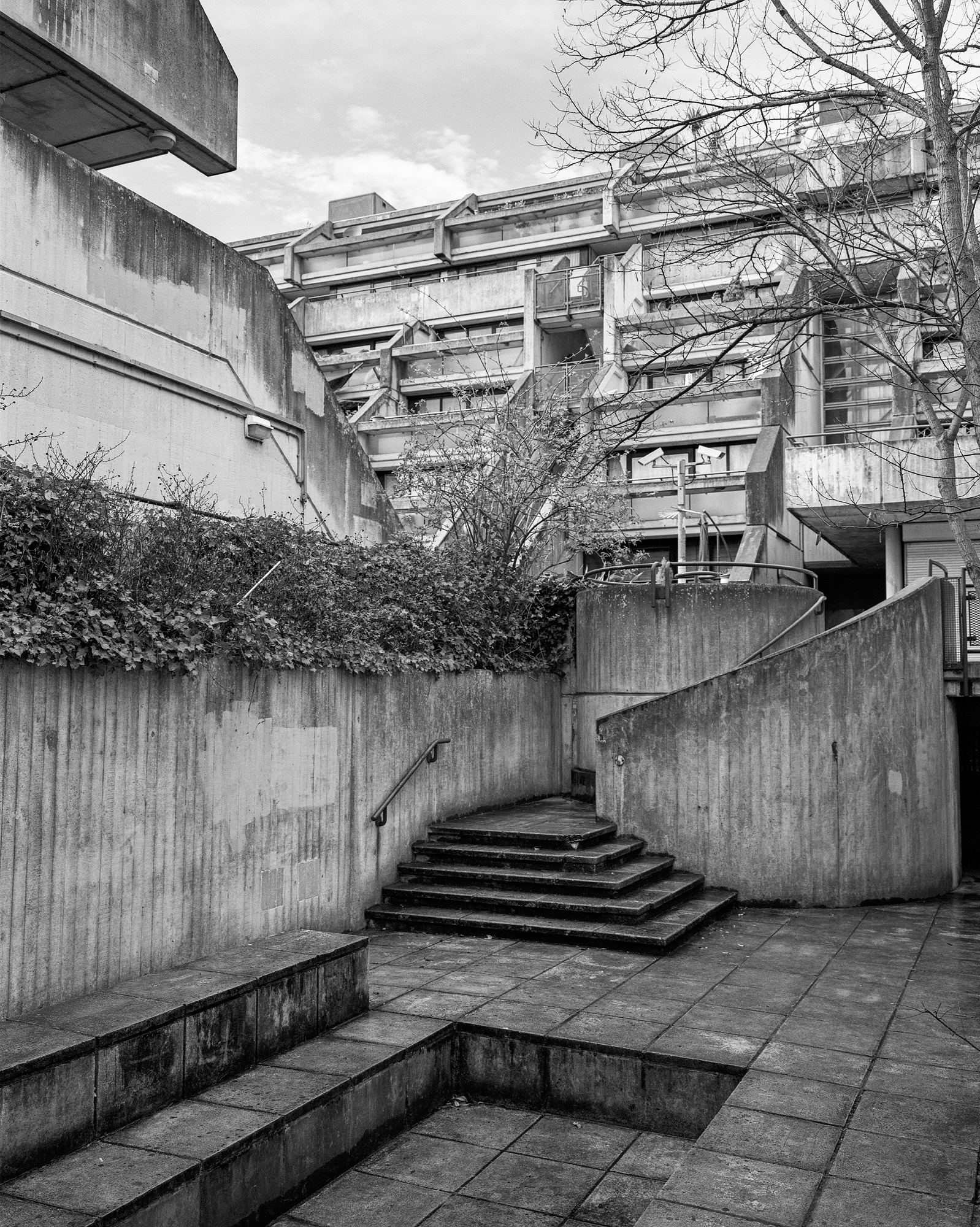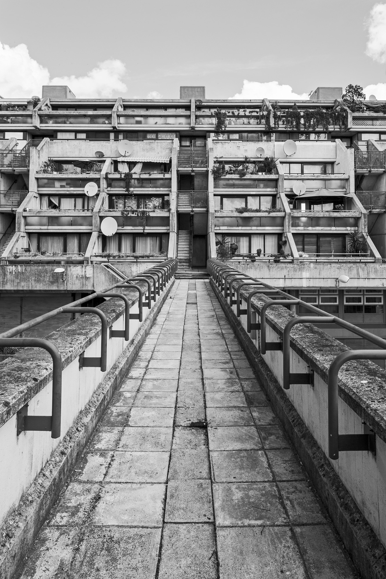 The new council of Camden formed in 1965 had the necessary circumstances for creating housing of the highest quality – visionary borough architect, Sydney Cook; a pool of passionate and talented young designers; and a substantial housing budget. Camden’s enlightened policies, implemented through excellent and innovative housing resulted in an increase in social housing and an improvement in the residents’ quality of life. The Alexandra Road Estate is an extravagant and grandly ambitious comprehensive redevelopment of a 15-acre site in South Hampstead. The development comprises three parallel linear terraces of varying heights, the tallest of which is built as a ziggurat. The stepped section acts as a buffer to sound and vibration from the West Coast Mainline Railway that bounds the north of the site. Built from in-situ concrete – that is, cast on site in wooden form work – the estate is an exemplar of Camden housing and Neave Brown’s principle of low-rise high-density development in contrast to the tower blocks still commonly commissioned by many borough councils of the time. One of the last of Camden’s major housing projects, it was built on a scale that won’t be seen again.