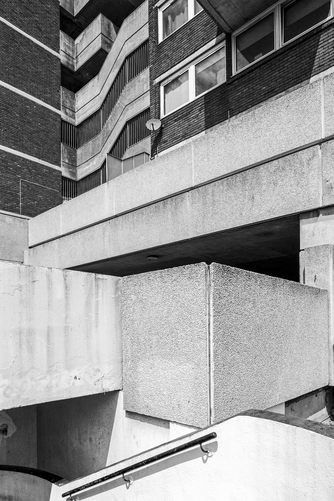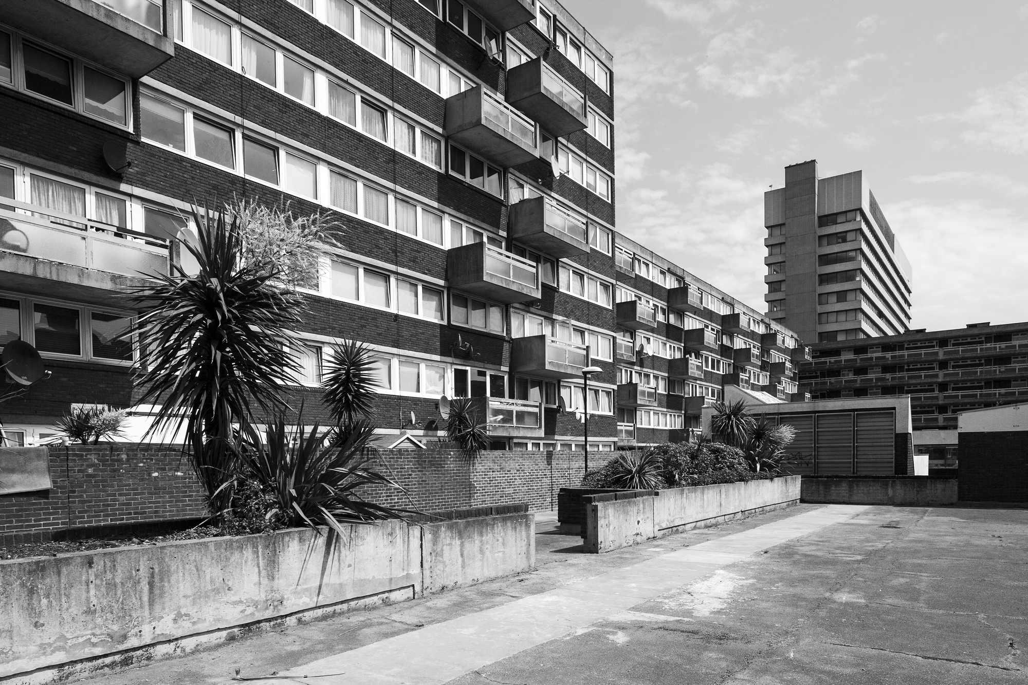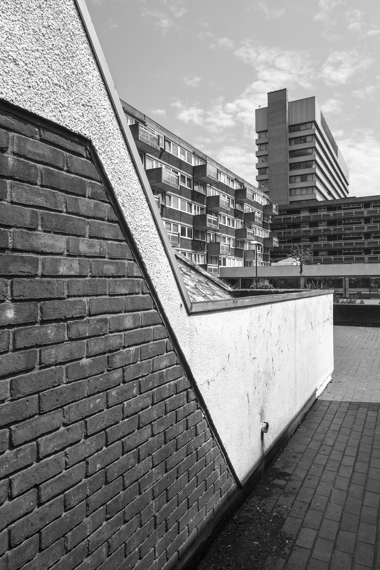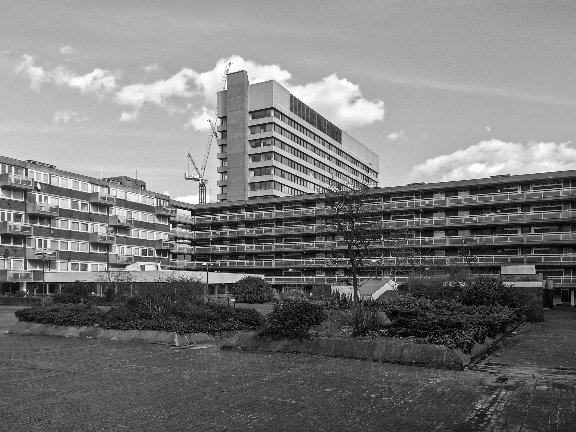 The King Street development is a nine storey high block that wraps around and overlooks an internal square with gardens and sports courts. It is built in brick with concrete balconies, and is sited above a shopping centre designed by Richard Seifert & Partners.