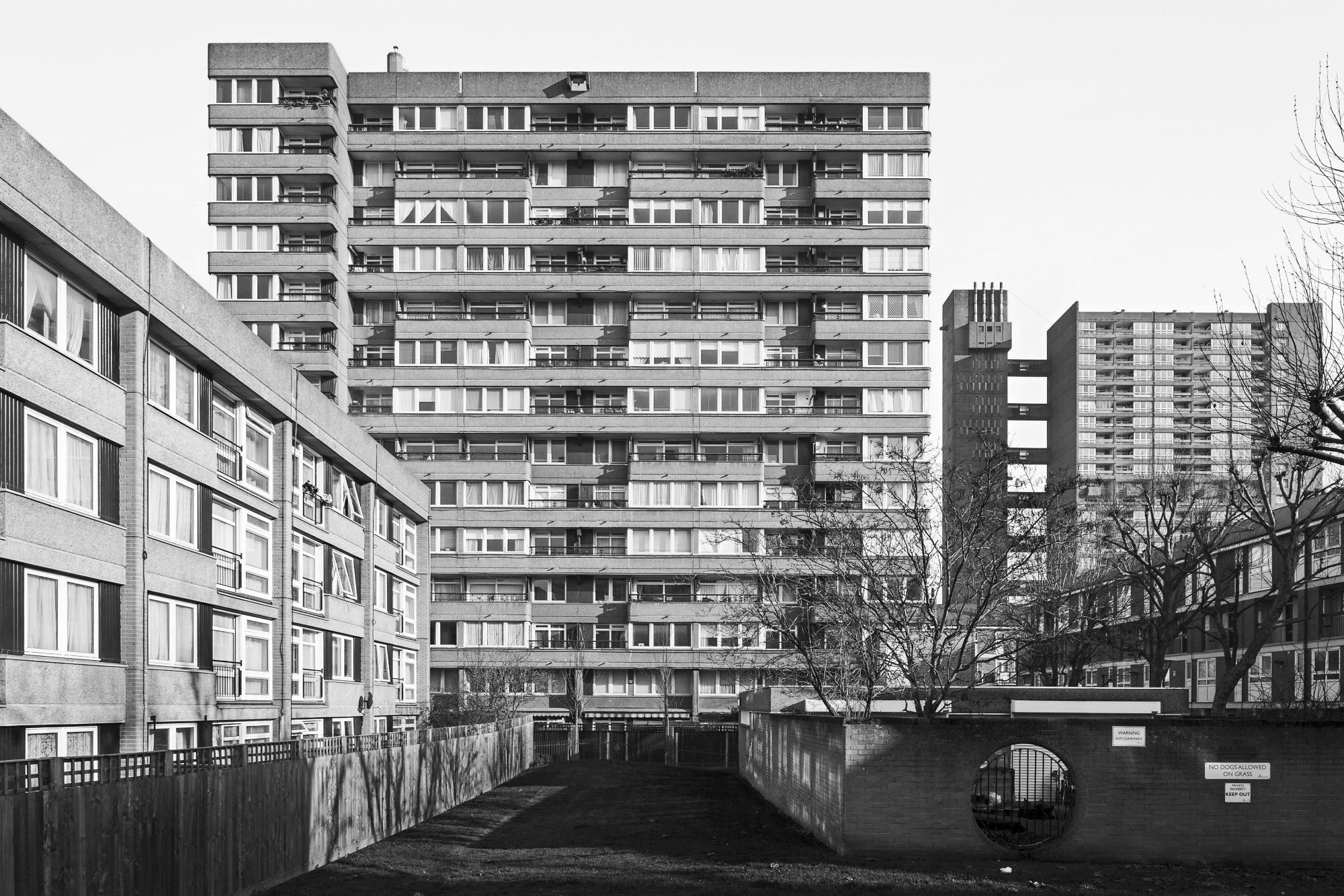 Brownfield Estate, Poplar E14. Designed by Ernö Goldfinger for London County Council. Built by Greater London Council, 1965-75. Elements listed grade II and grade II*