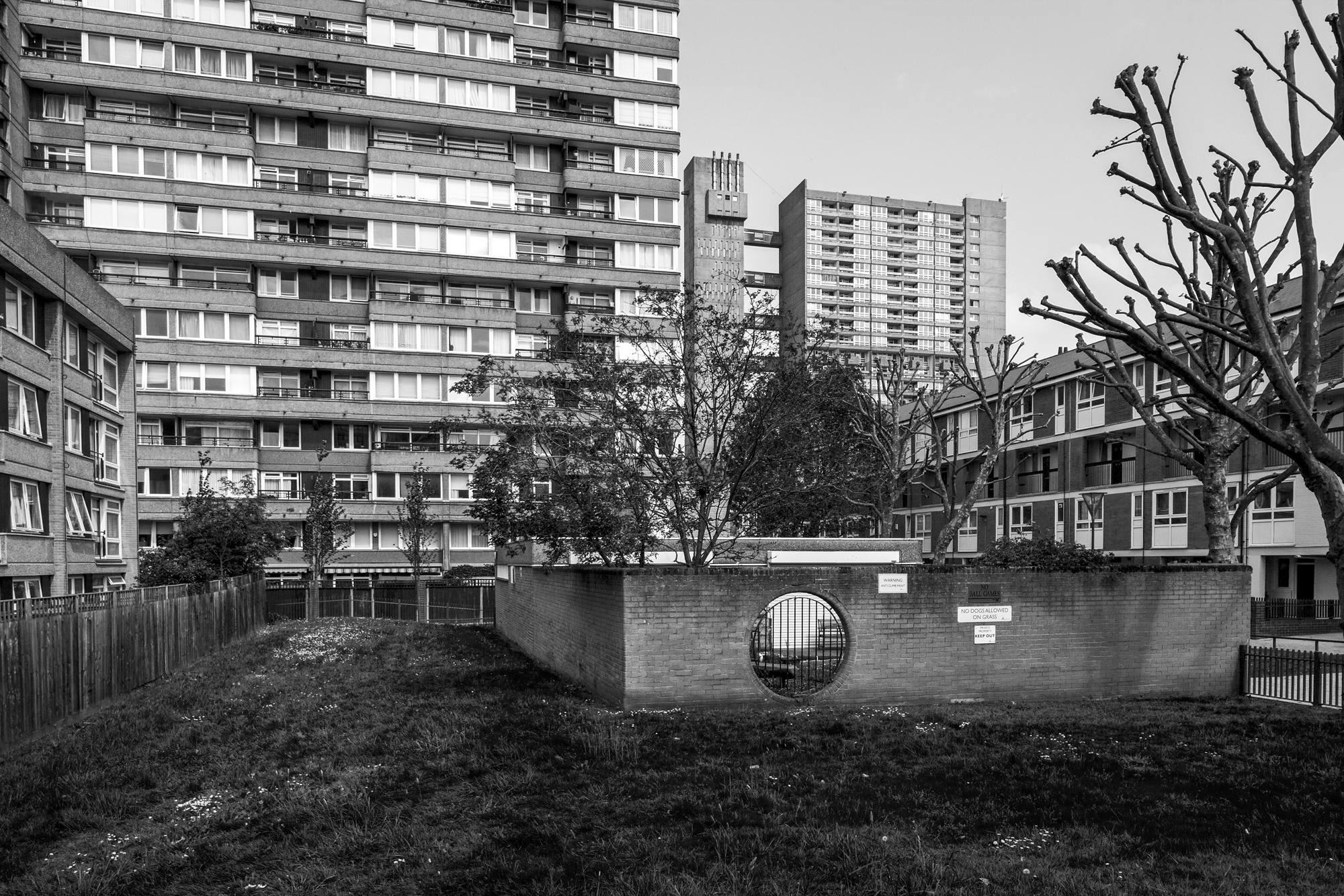 Hungarian émigré Ernö Goldfinger was on a list of London County Council approved architects when he was commissioned to design the Rowlett Street development (later renamed the Brownfield Estate) bordering the Blackwall Tunnel approach road. Goldfinger, who mixed with the avant-garde while studying architecture in Paris under Auguste Perret – a pioneer of reinforced concrete – was a consummate and forceful European modernist. The Brownfield commission allowed him to compose an estate to house a community within a development which integrated housing, recreational green space and amenities. The estate has a consistent material aesthetic and was developed in three phases. First came the 26-storey Balfron Tower, with its separate lift tower, which became the model for the later Trellick Tower in North Kensington. Carradale House, a lower block which runs at a right angle to Balfron and is linked by a concrete bridge, came next. Compositionally, this frames the ground-level public spaces, playground, community centre and basement-level parking. The third and last major development was the separate Glenkerry House. All the buildings are highly sculptural and, as a group, have a hugely powerful aesthetic, reinforced by the consistent and finely textured monumental concrete forms that inform the design across the estate. Goldfinger and his wife Ursula lived in Balfron Tower for a short period in 1968 as both a technical and sociological fact-finding exercise to inform future buildings.
