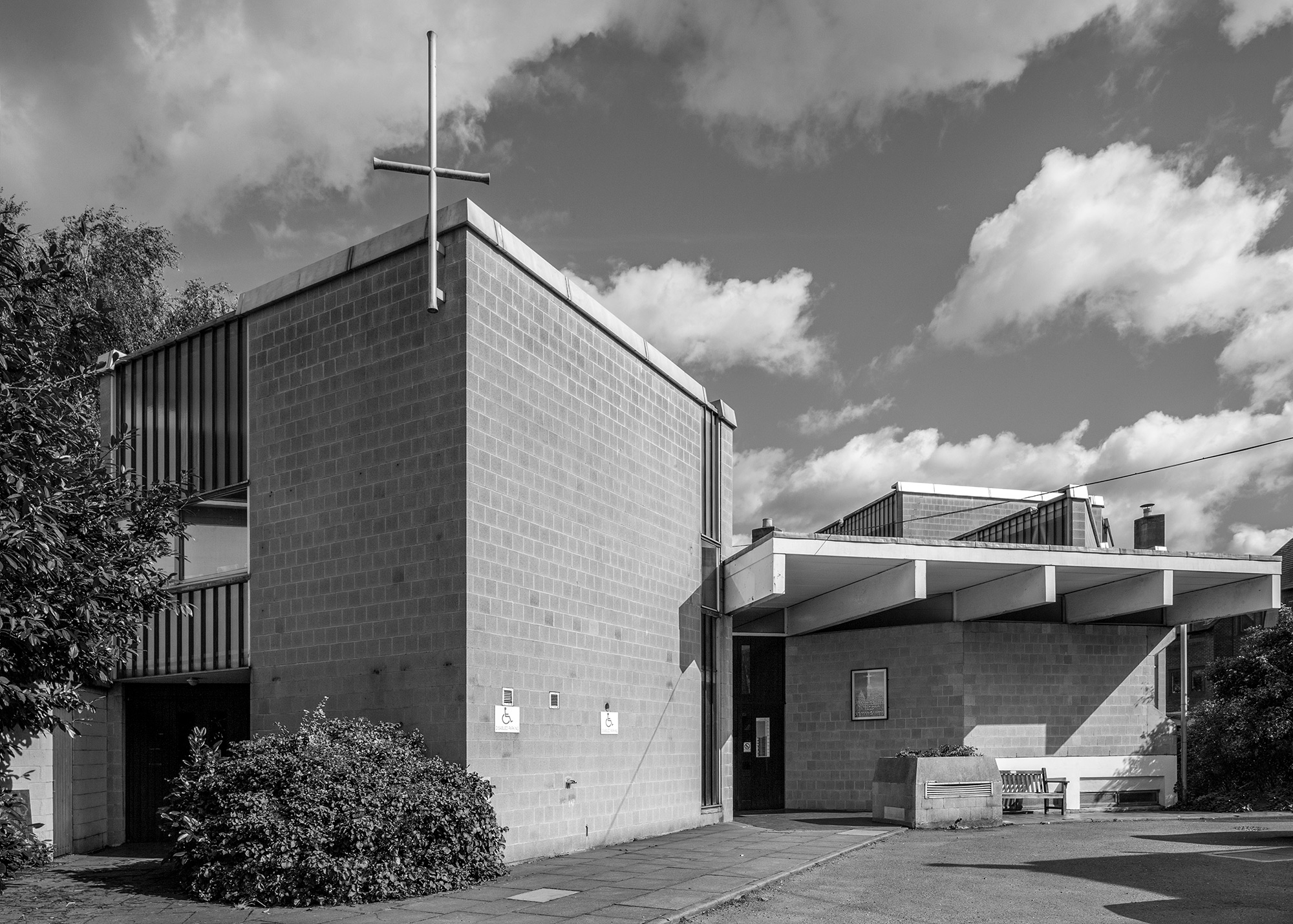 The Church of St Margaret of Scotland is the first church by Austin Winkley, who studied under Robert Maguire at the Architectural Association and was a member of the New Churches Research Group, founded in 1957 to promote a modern idiom appropriate to the ideas of the Uturgical Movement. The meeting of the Second Vatican Council in 1962-5 saw the acceptance by the Roman Catholic Church of many of the movement’s ideas, which produced a radical rethinking of design, expressing ‘noble simplicity rather than sumptuous display’. This is an early and particularly well-made and well-detailed example of post-Vatican II planning.