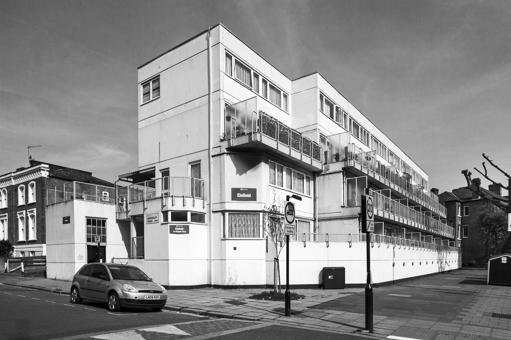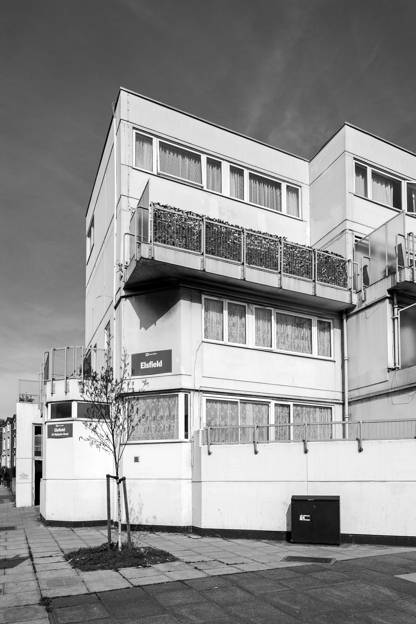 Elsfield on Highgate Road, Kentish Town was designed by Bill Forrest of the London Borough of Camden Architects’ Department in 1967 and built in 1968.