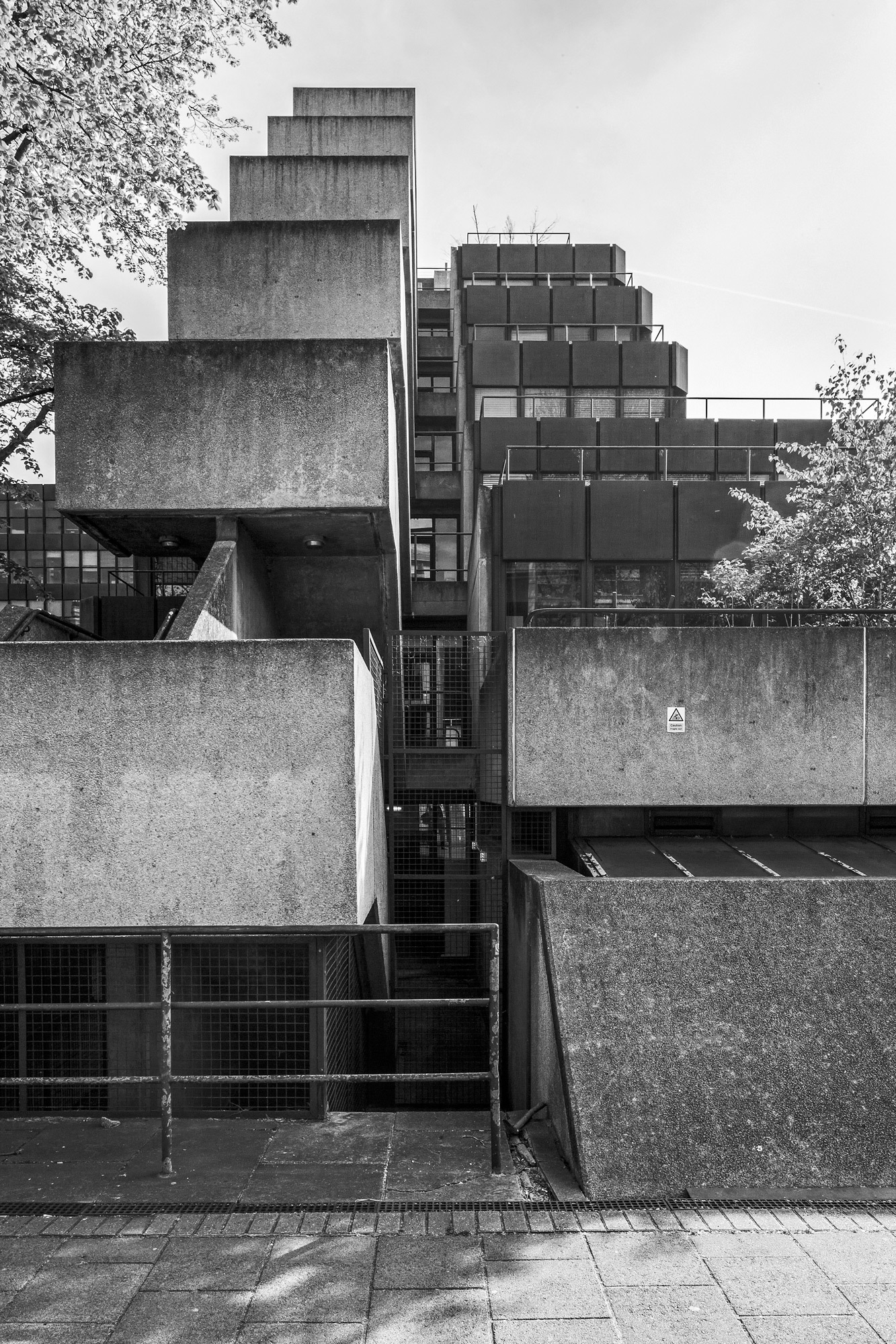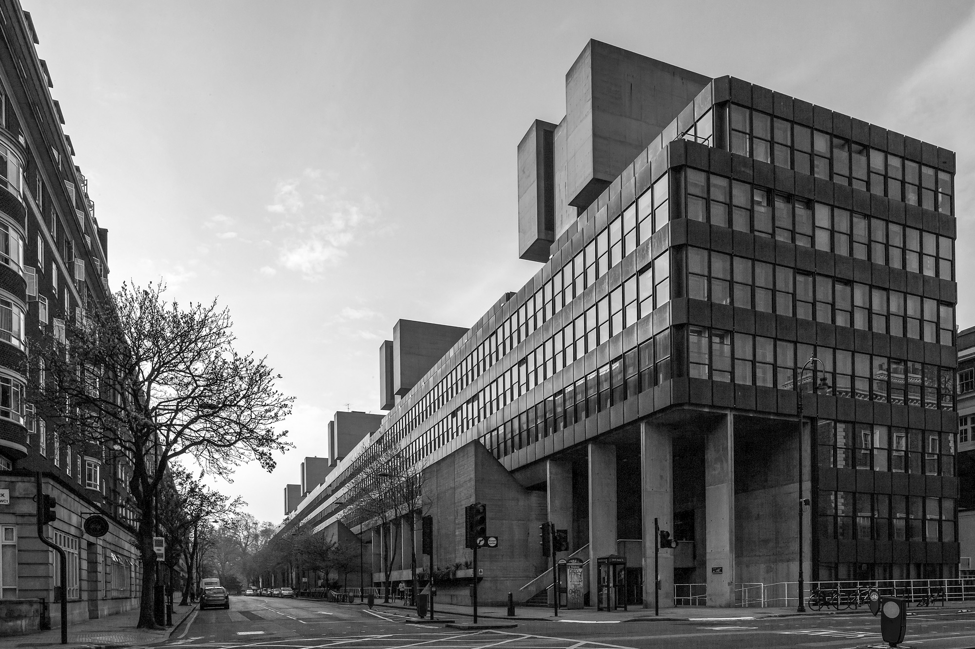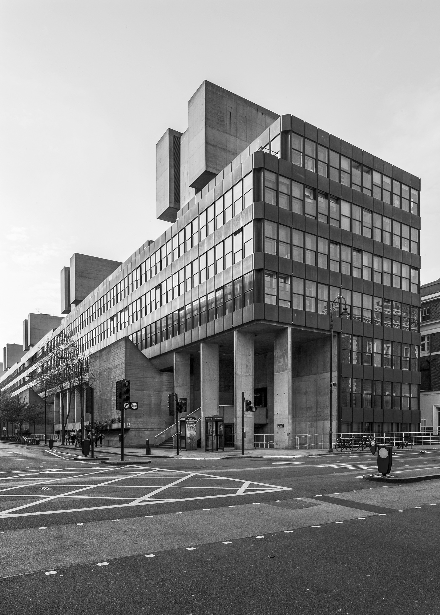 `Lasdun’s architecture carries absolute conviction’, Architectural Review, March 1980, p.148. Although a building constructed to a grid, it is Lasdun’s interest in planes and interpenetrating masses and belief in pure form and modelling. His synthesis of the modern movement of the 1930s, inspired by working with Wells Coates and Berthold Lubetkin, and his unique understanding of the formalism of the later generation of the New Brutalists makes him a comparable figure with Louis Kahn and is demonstrated particularly well here. This building forms a contrasting mass to the square pavilion of Lasdun’s extension to the School of Oriental and African Studies, with which it forms an exceptionally strong group.