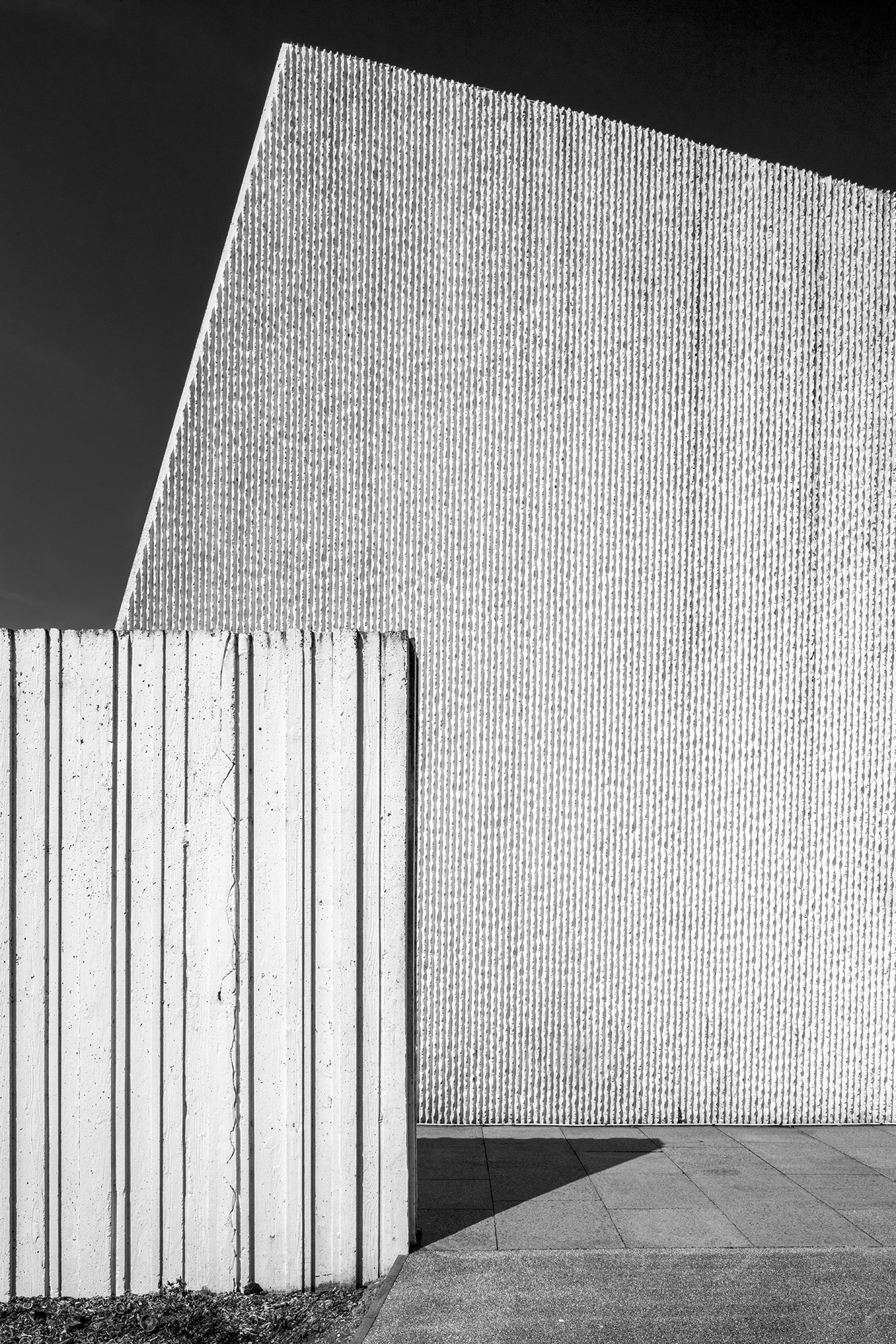 Crematorium complex in modernist style, characterised by the use of exposed concrete, massing of the geometric forms of each element of the complex and single-pitch roofs of contrasting angles. Emphasis is given to the main buildings with the use of ribbed rusticated concrete whereas the linking structures use irregular cast surfaces.