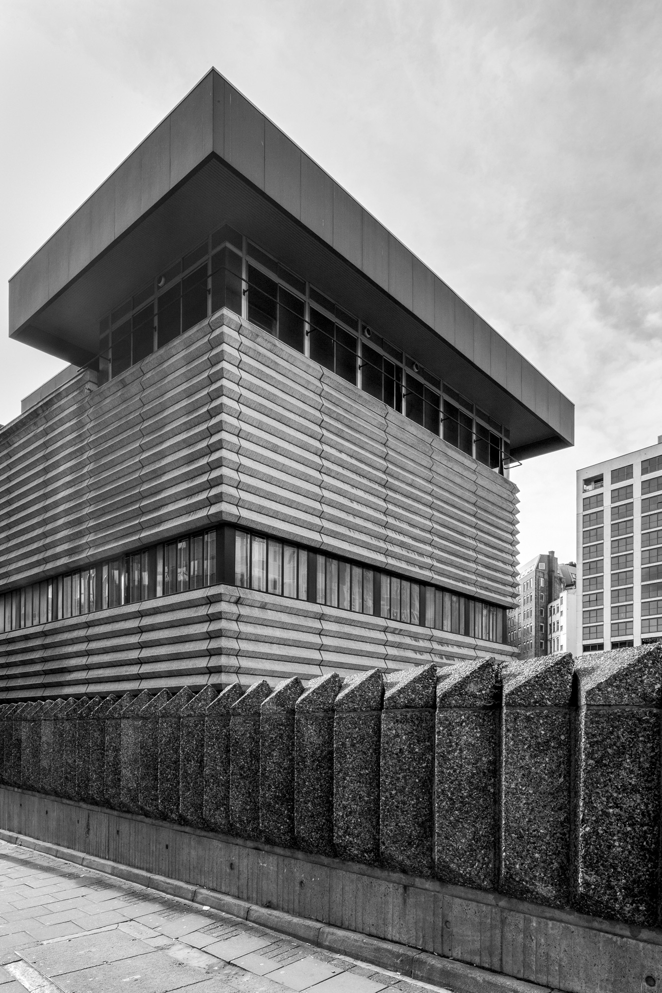 Architects Bicknell and Hamilton in collaboration with R L Moorcraft the Regional Architect, London Midland Region. Horizontal pre-cast concrete cladding units of a bold triangular profile, hung from a reinforced concrete frame. The boundary parapet wall in Navigation Street is constructed from facetted vertical pre-cast concrete units. Continuous metal windows; walls on either side of the entrance doors are finished in vertical glazed tiling. Flat roof. Contains staff and equipment rooms. Five storeys high above railway track level and four storeys above street level with single storey wing at track level. Various floor to floor heights. The signalling control room at top level is surrounded by a projecting flat roof with a deep down-standing fascia to provide shading for the control console. The building is very much a ‘one off’ constructed on a very difficult and congested site. A dramatic building of exceptional architectural quality with a strongly sculptural form.