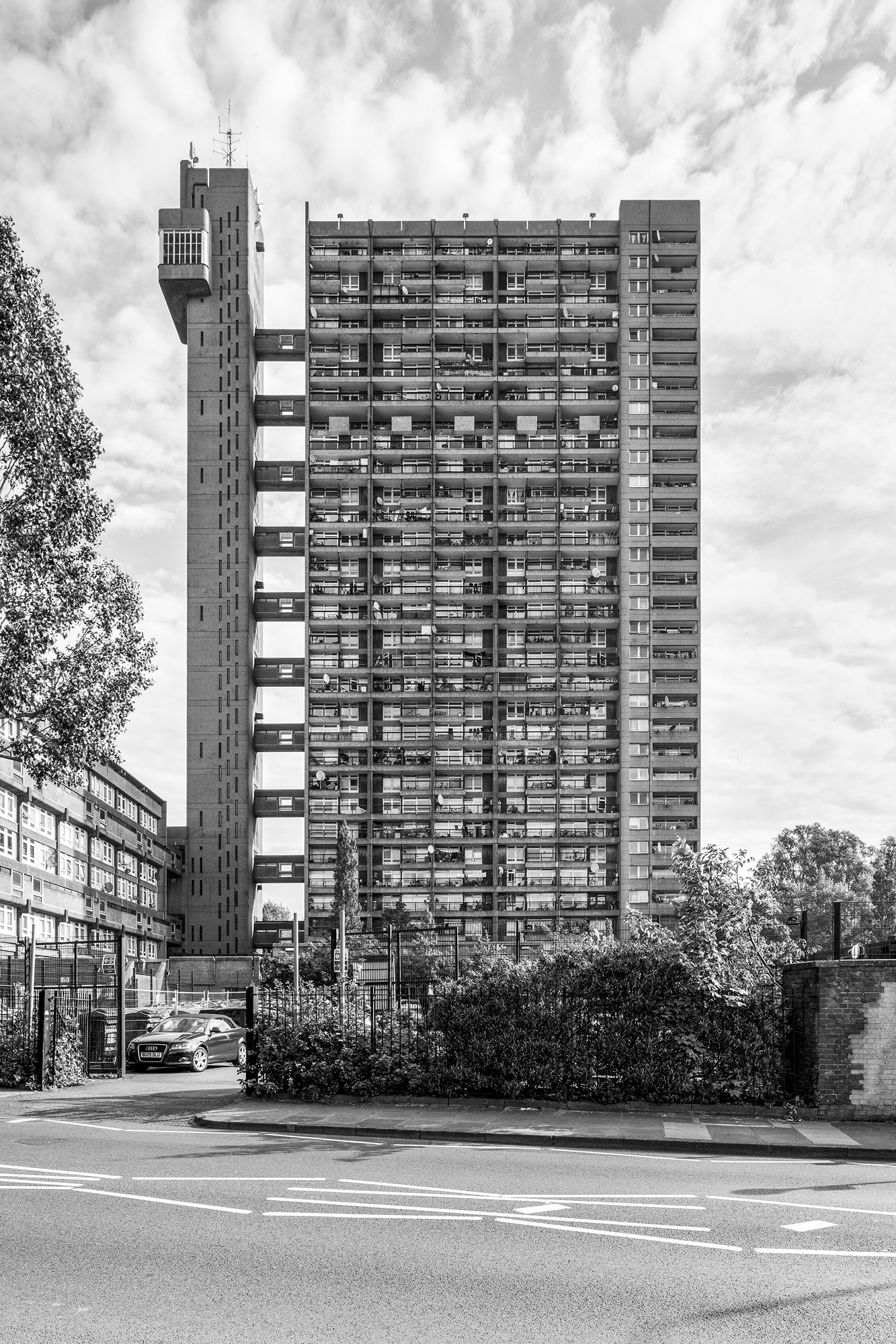 Trellick Tower, Cheltenham Estate, Golborne Road, North Kensington W10. Designed by Ernö Goldfinger for the Greater London Council. Built 1968–72. Listed grade II*