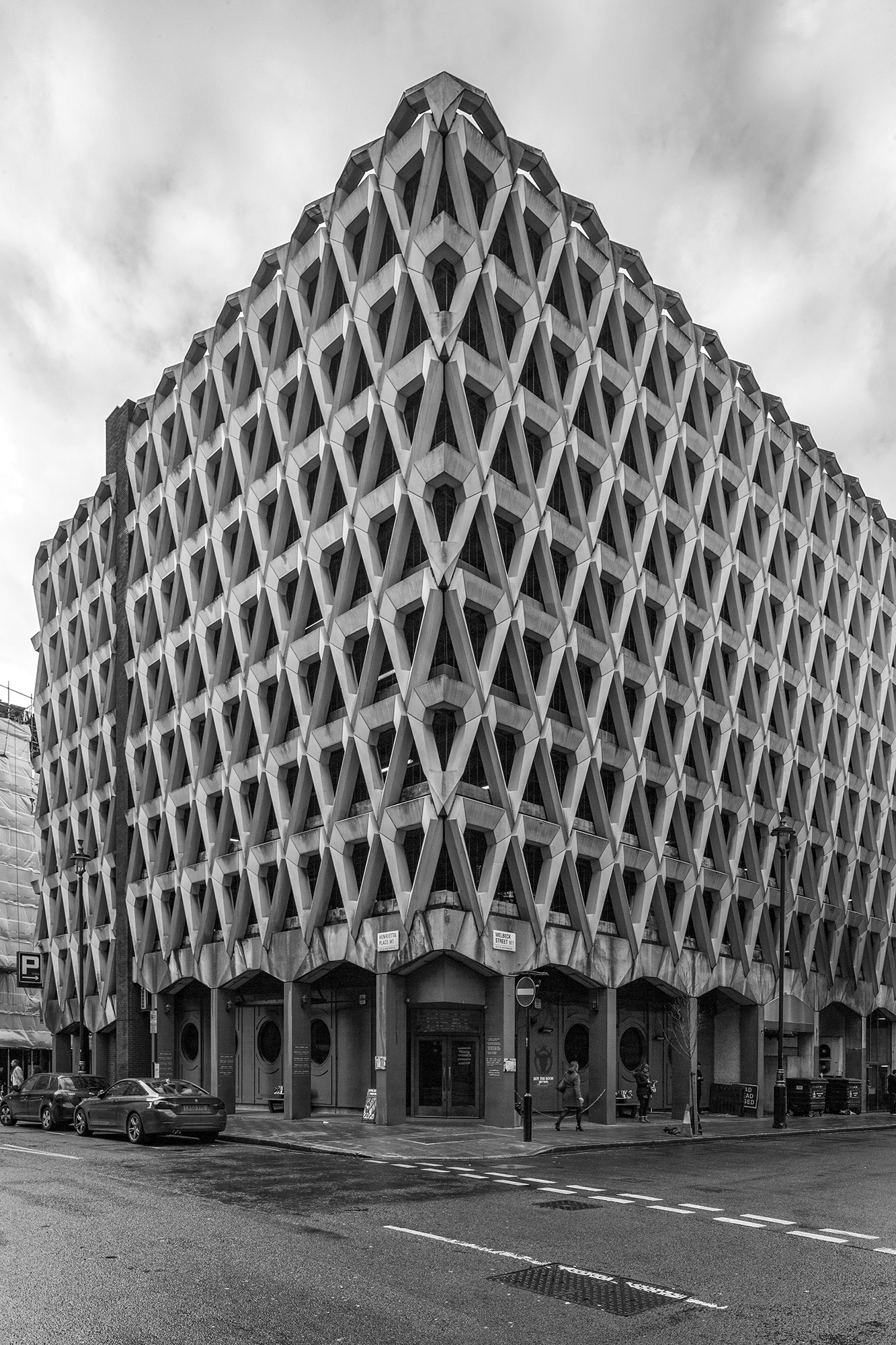 Tessellated unit construction was well-established by the time the car park was built, though in this instance furthers the interest of modular construction through the creation of the complex, faceted units. Full-scale polystyrene mock-ups were produced and exposed to the elements for protracted periods to assess their weathering performance; their design was refined to dispel water effectively in order to minimise staining. The intention to express the structural form of the building was key within the design process, the break in the south elevation with the brick spine wall expresses the split-level form of the interior, neatly dividing the façade and using a combination of materials typical of the period.